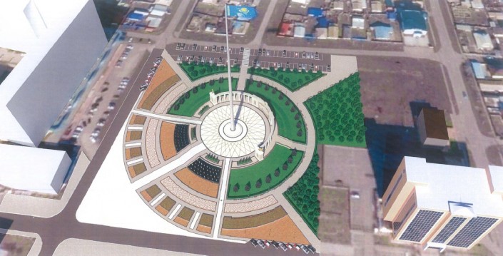 Новая площадь в Атырау расположилась на ранее не использовавшемся земельном участке, возвращенном в государственную собственность.