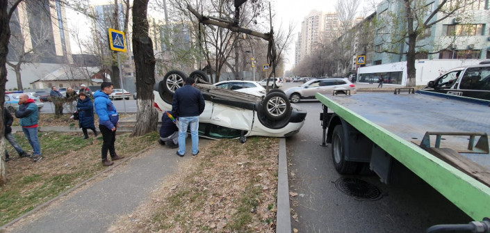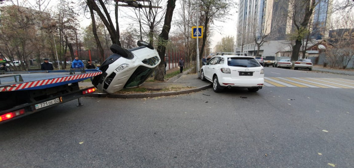 Авария с кроссовером-перевертышем произошла в Алматы
