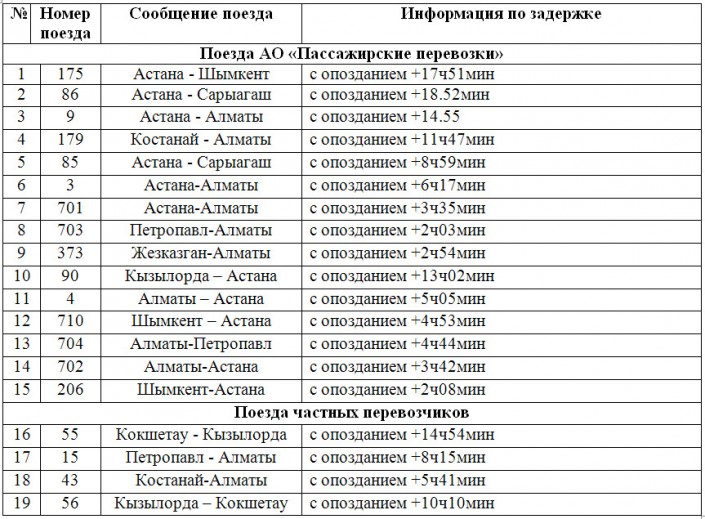 В компании заявили, что прилагают все меры для восстановления графиков движения поездов. Схема изменений графиков прилагается ниже.