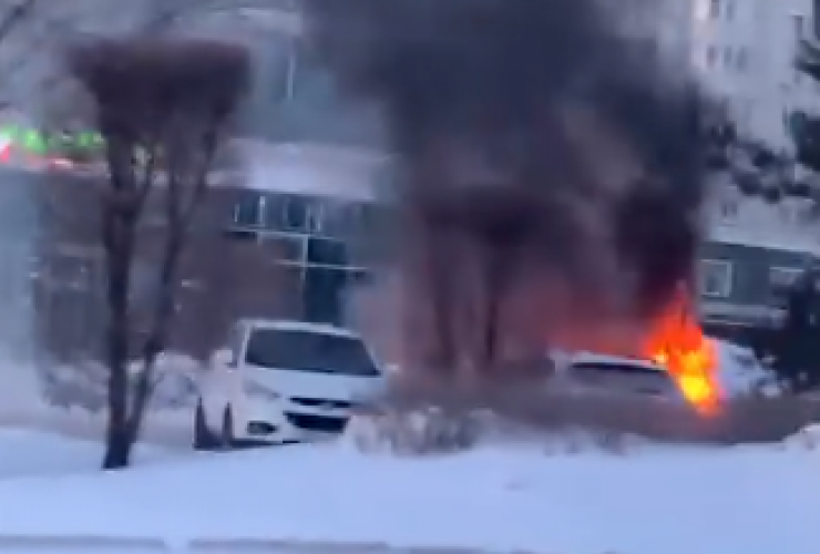 Автомобиль горел в Нур-Султане Скриншот видео/ Instagram.com/jagersredbullom/
