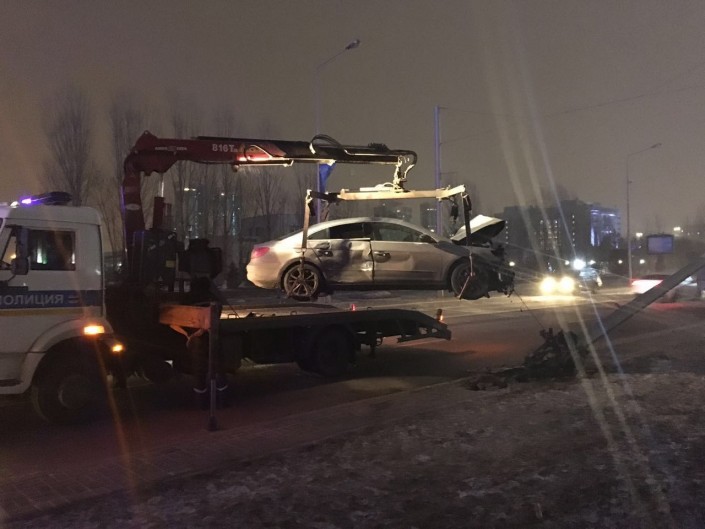 В Астане автомобиль на скорости врезался в столб, передает корреспондент Tengrinews.kz.