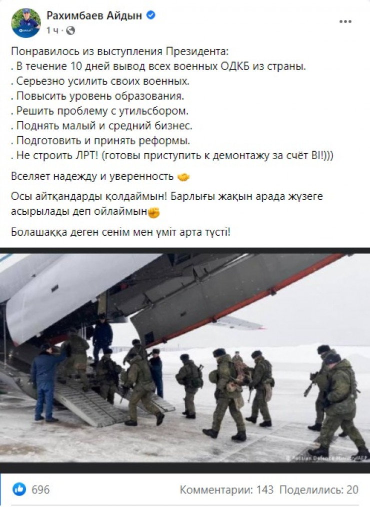 В своей публикации в Facebook Рахимбаев отметил, что ему понравилось выступление Президента.