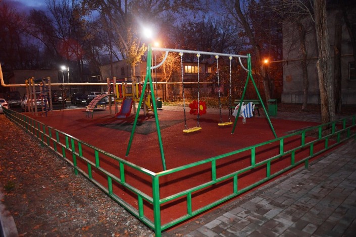 В ходе инспекции реконструированных дворов в Турксибском районе главе города доложили, что в текущем году в районе благоустроено 80 дворов с устройством асфальтового, резинового и брусчатого покрытий, установкой скамеек, урн, освещения, спортивных и детских площадок. Помимо этого, по словам акима района Павла Кулагина, в рамках реализации программы "Рухани жаңғыру" в районе построено несколько спортивных и детских площадок.