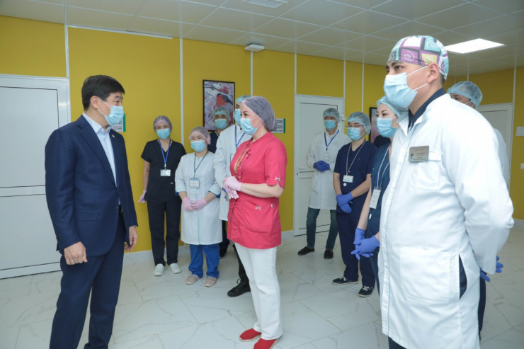 Первый зампред партии также встретился с медицинскими работниками города в новой модульной инфекционной клинике.