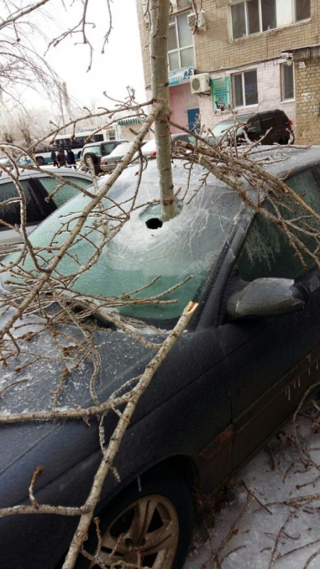Между тем, из-за сильного обледенения в Актобе 11 марта стали падать деревья, несколько из них пробили стекла машин. В частности, дерево упало на "Опель" и пробило лобовое стекло. К счастью, водителя не было, отмечает "Диапазон".