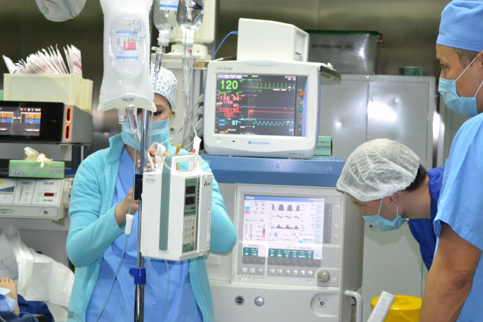 Во время операции врачи проверяли состояние плода и его сердцебиение. В этом помогли специалисты Национального научного центра материнства и детства и акушер-гинеколог Берик Примбетов.