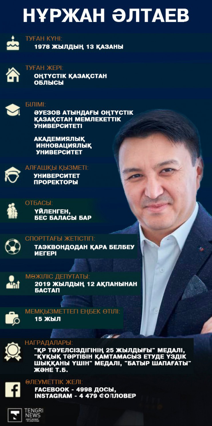 Нұржан Әлтаев Мәжіліс депутаты болып 1,5 жылдай жұмыс істеді. Tengrinews.kz тілшісі мәжілісмен туралы деректер жинады.