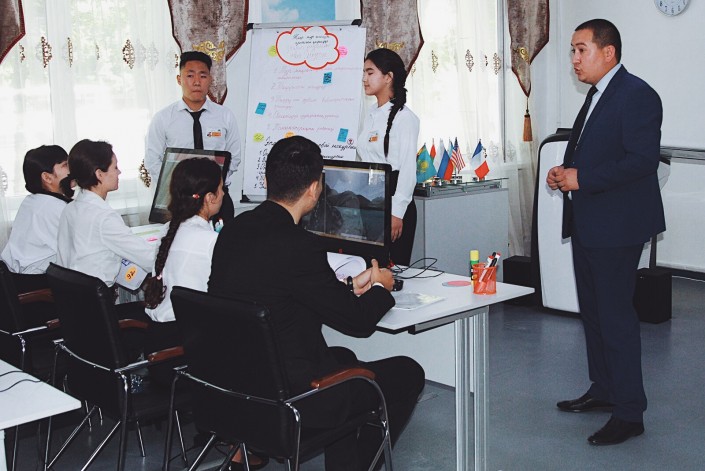 Студенты Колледжа индустрии туризма и гостеприимства Алматы по программе. Класс по туризму. Ученики разрабатывают 3D-экскурсии по городу.
