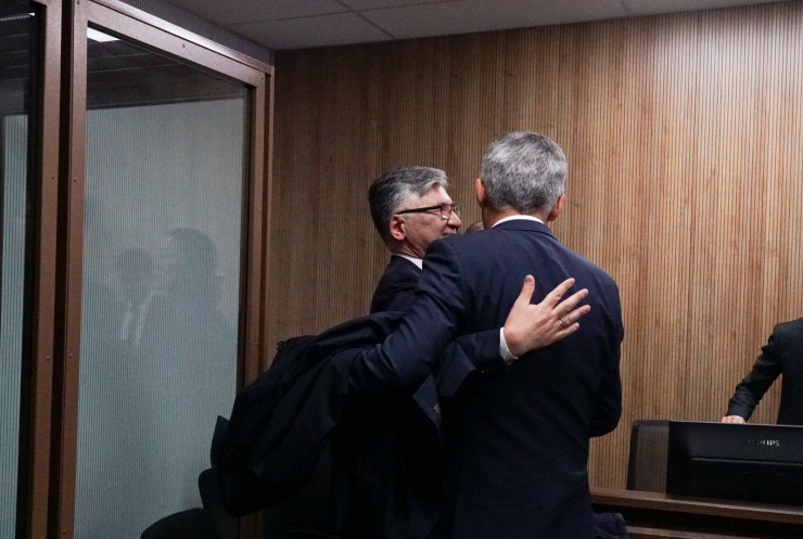 Елжан Биртанов с родным братом после оглашения приговора. Ержан Биртанов выступал в суде в качестве общественного защитника.