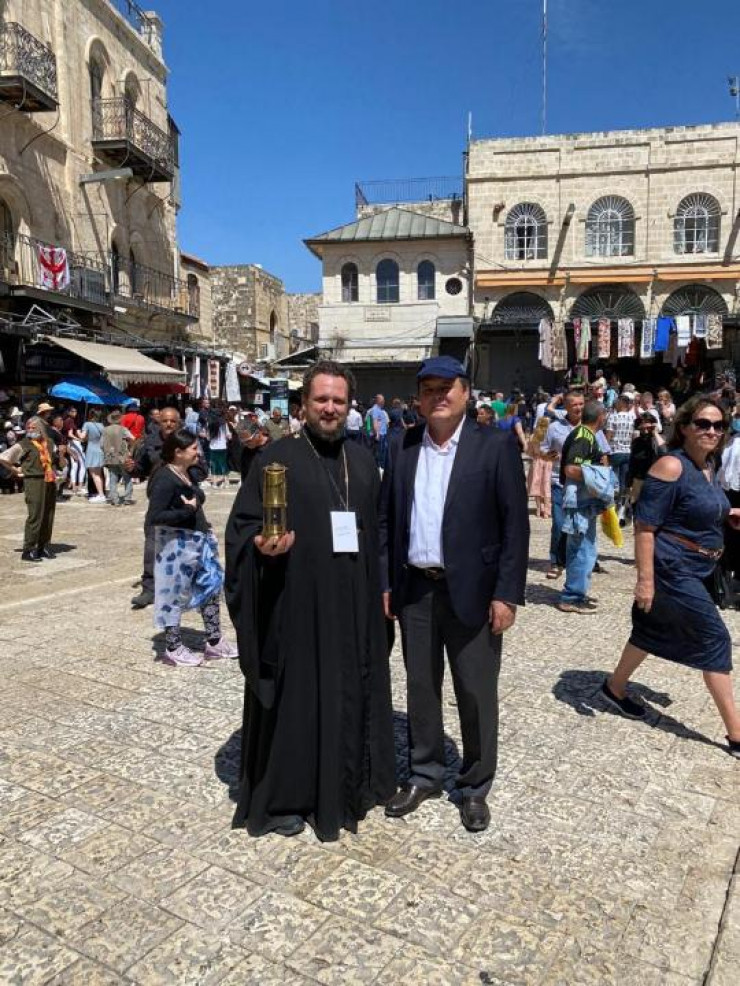 "Посольство Казахстана в Израиле и представители Православной церкви Казахстана приняли участие в церемонии схождения Благодатного огня в храме Гроба Господня. Священнослужители Греческой православной церкви доставили святой огонь к Яффским воротам старого города Иерусалима, где его получили дипломаты зарубежных стран и уполномоченные лица", - говорится в сообщении МИД Казахстана.