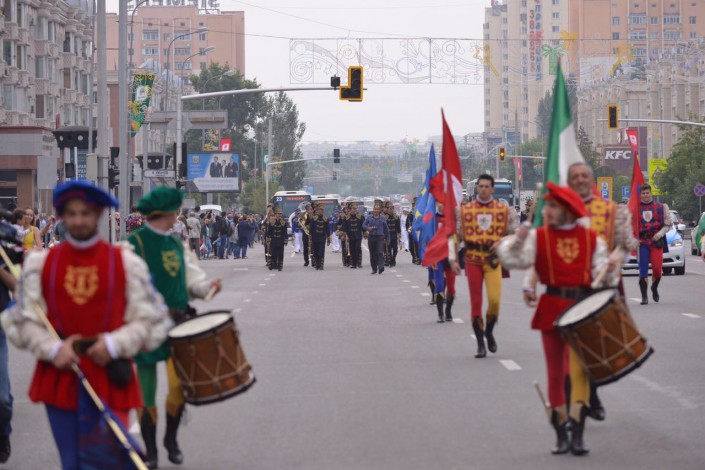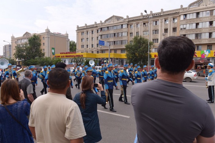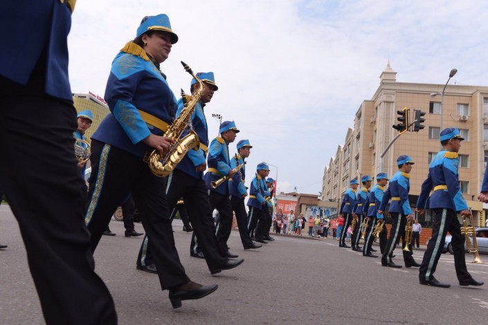 По проспекту Республики (от военно-исторического музея до дворца "Жастар") прошлись более 200 музыкантов, участников фестиваля духовых оркестров "Астана Самалы". По словам художественного руководителя Государственной академической филармонии акимата Астаны Сакена Абдрахманова, участниками парада стали пять коллективов из Казахстана, России и Италии.