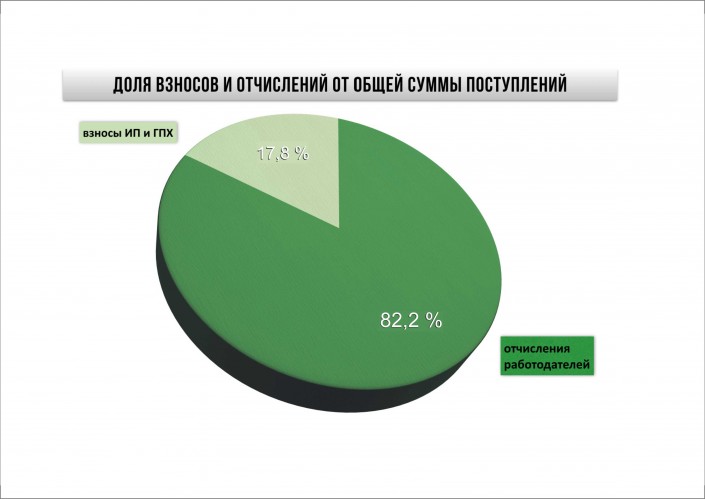 Отмечается, что из общей суммы в 32,1 миллиарда 26,4 миллиарда тенге (около 82,2 процента) приходятся на отчисления работодателей, 5,7 миллиарда тенге (около 17,8 процента) - на взносы индивидуальных предпринимателей и лиц, работающих по договорам гражданско-правового характера.