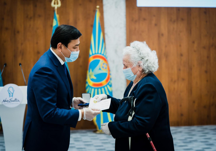 Столичным педагогам вручили медали "Халық алғысы", "Еңбек ардагері", нагрудные знаки "Қазақстан Республикасы білім беру ісінің құрметті қызметкері" и "Ы. Алтынсарин" МОН РК, грамоты и так далее.