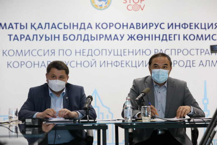 Главный санврач города Жандарбек Бекшин и заместитель акима Алматы Ержан Бабакумаров