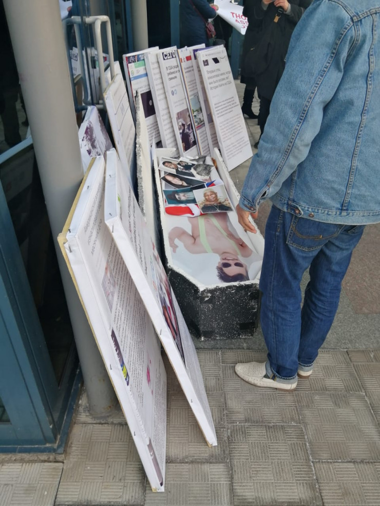 "Борат" в гробу: алматинцы снова собрались у генконсульства США Фото очевидцев