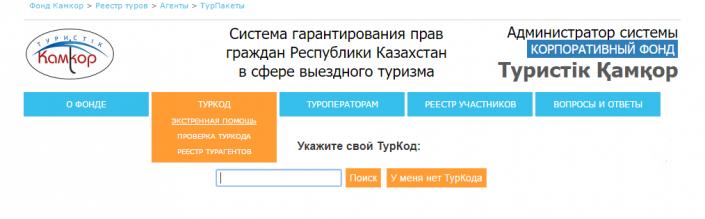 Туркод выдается индивидуально каждому туристу, данные и контакты которого хранятся в базе данных фонда. Активизировать его в случае чрезвычайной ситуации можно с помощью сайта Fondkamkor.kz или по телефону горячей линии, указанному на сайте.