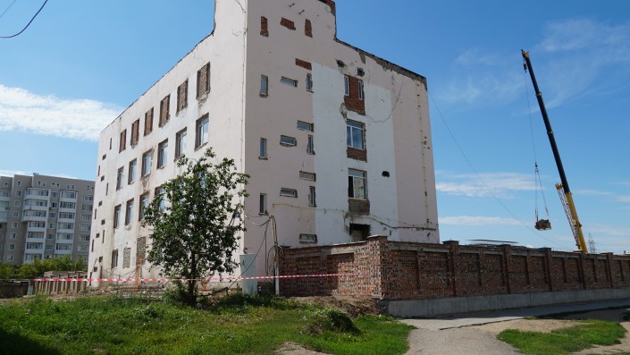 Сейчас старое четырехэтажное здание реконструируют. Оно располагается на пересечении улиц Кумисбекова и Сейфуллина - на правом берегу.