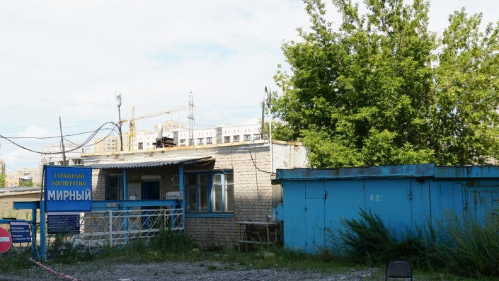 Заднюю сторону территории разделяет гаражный кооператив "Мирный".