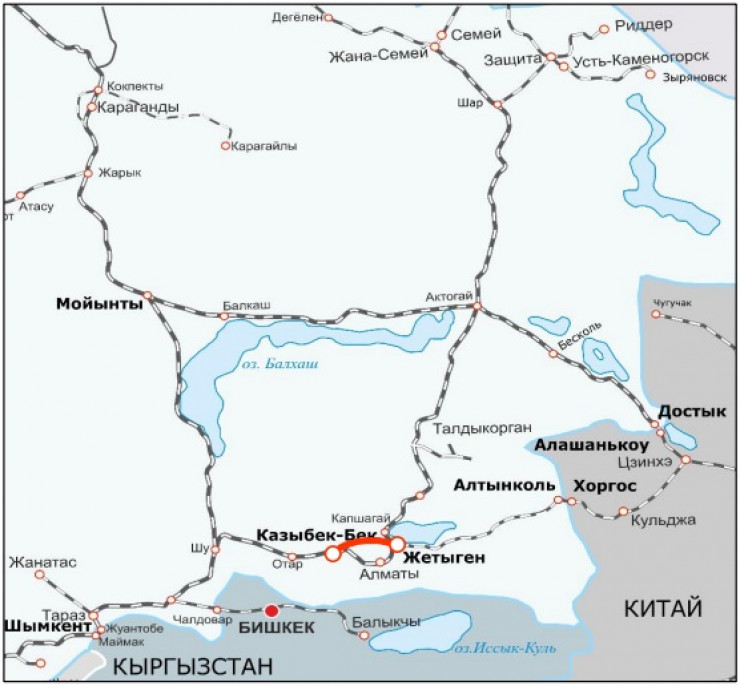 Как будет выглядеть новая железная дорога в обход Алматы. Карта