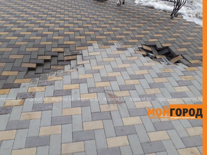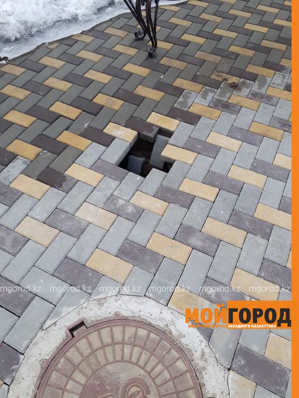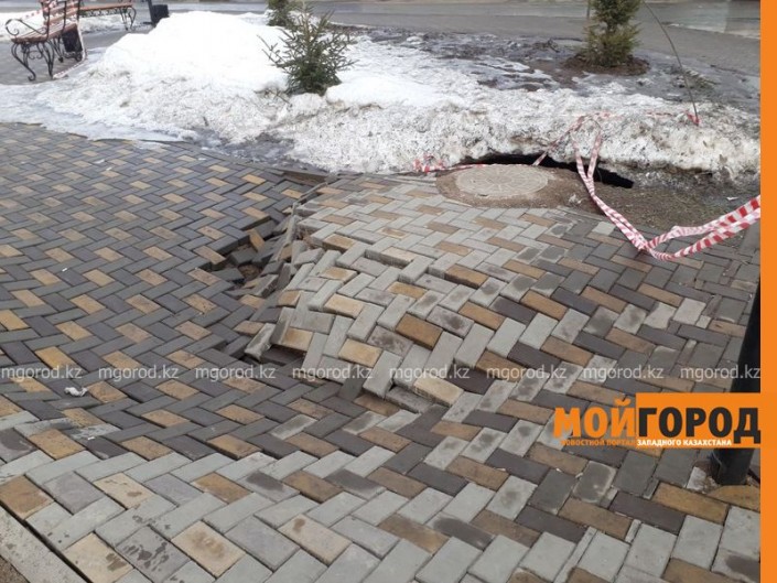 Между тем, как рассказали в ЖКХ Уральска, брусчатка провалилась из-за оседания грунта.