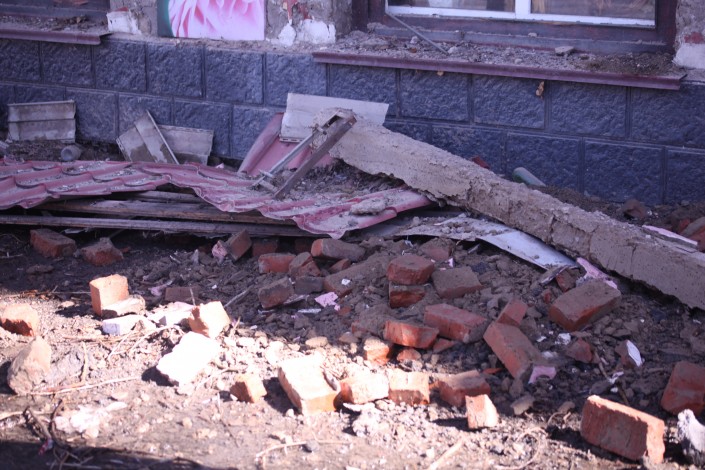 По информации местного КСК, обрушилась бетонная перемычка, находившаяся над окном третьего этажа. Строительная конструкция упала на козырек пристроенного к дому цветочного магазина. По счастливой случайности никто из прохожих не пострадал.