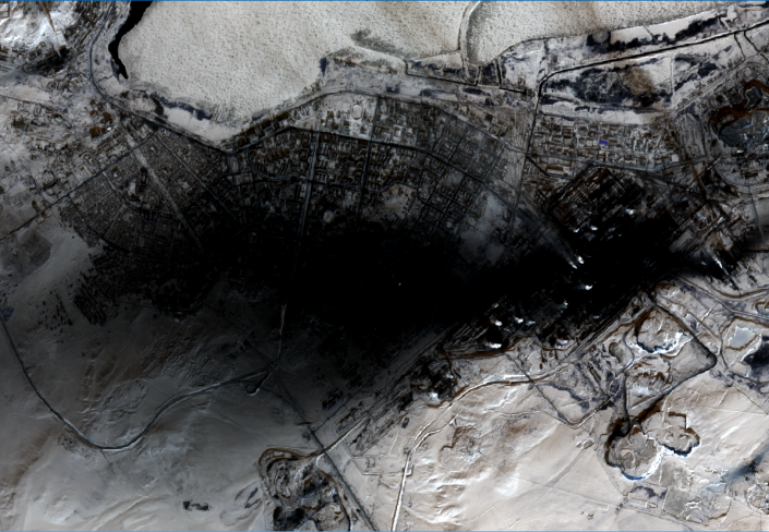 Как объяснил преподаватель геоинформационных систем, предоставивший фотографии, черное пятно над городом - это дым, выходящий из завода.