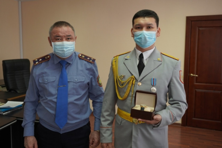 Патрульного из Костаная Амантая Байжанова наградили. Его отважный поступок по спасению людей из снежного затора отметили коллеги. Лейтенанта наградили ценным подарком – часами с логотипом МВД.