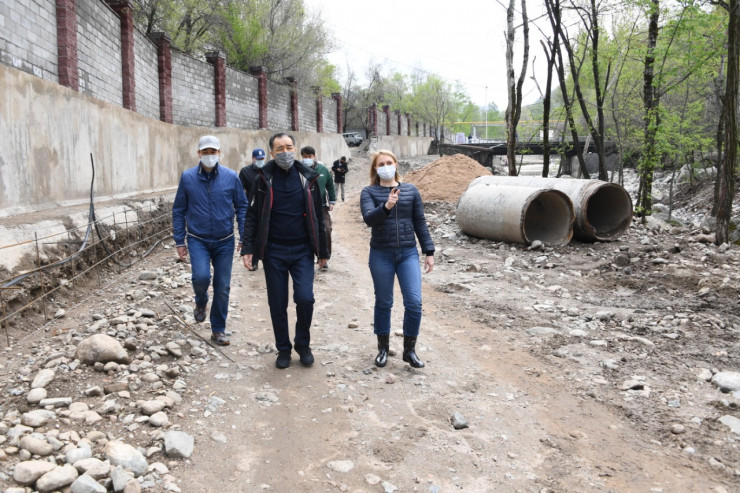 Во время объезда аким ознакомился реконструкцией участка водоохранной полосы русла реки Есентай от улицы Жамакаева до вододелителя.