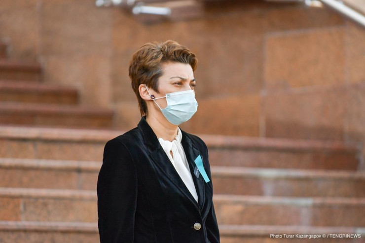 У пятого подъезда выстроились главный санитарный врач Казахстана Айжан Есмагамбетова...