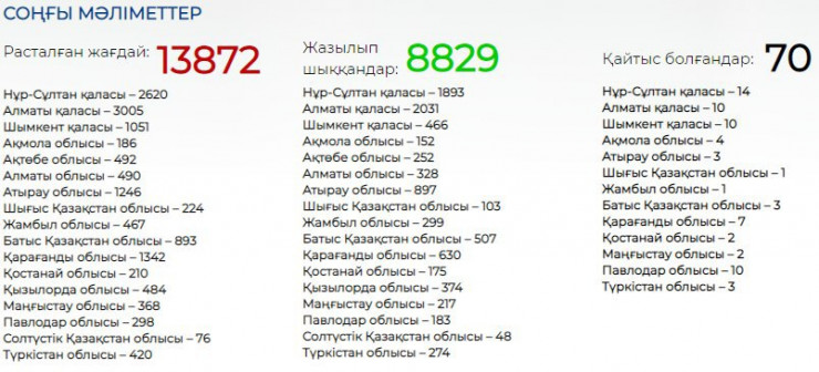 Таким образом, всего от COVID-19 в Казахстане скончалось 70 человек.