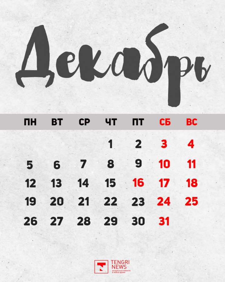 В декабре у казахстанцев на один выходной меньше.