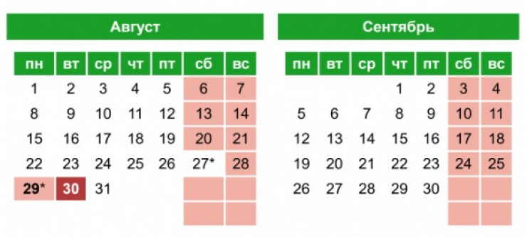 В сентябре казахстанцы останутся без праздничных выходных. При пятидневной рабочей неделе работники отдохнут 8 дней, 4 дня отдыха ждет при шестидневной рабочей неделе.