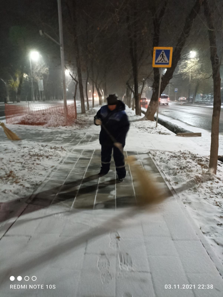 "Массовый вывоз снега с территории города будет производиться после утреннего часа пик. В районных акиматах организовано круглосуточное дежурство по контролю за производством работ по уборке снега", - сообщили в акимате.