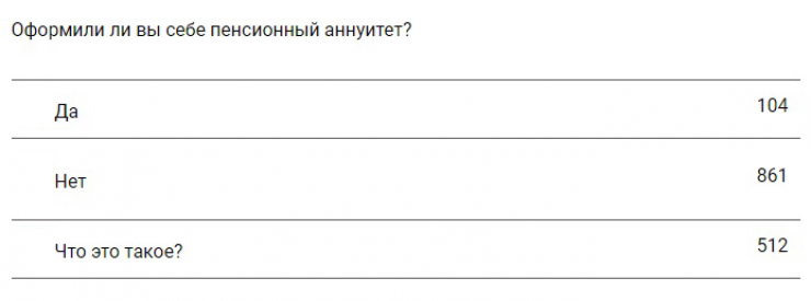 Кстати, о пенсионном аннуитете. Многие из опрошенных (512 человек) ответили, что даже не знают о таком договоре.