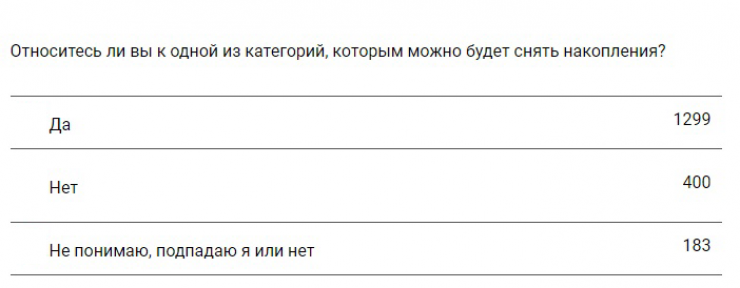 Из 1882 читателей большая часть (69 процентов) ответили, что подпадают под условия программы. 21 процент опрошенных не смогут снять свои накопления. Еще 10 процентов не понимают, смогут ли они воспользоваться новой программой.