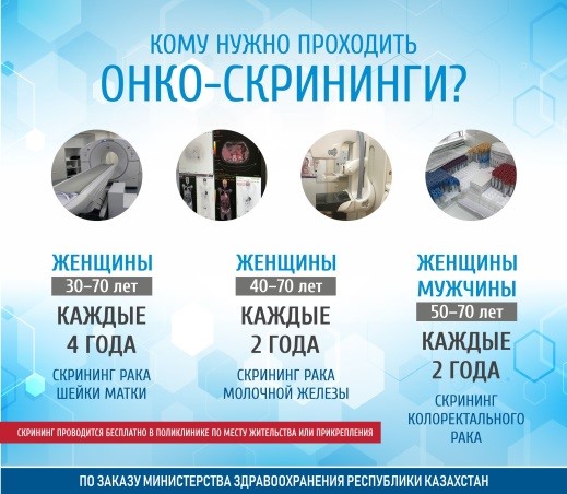 Хотя отдельные виды скринингов начали проводить в Казахстане с 2008 года, и жителей соответствующих групп риска постоянно приглашают на необходимые обследования.