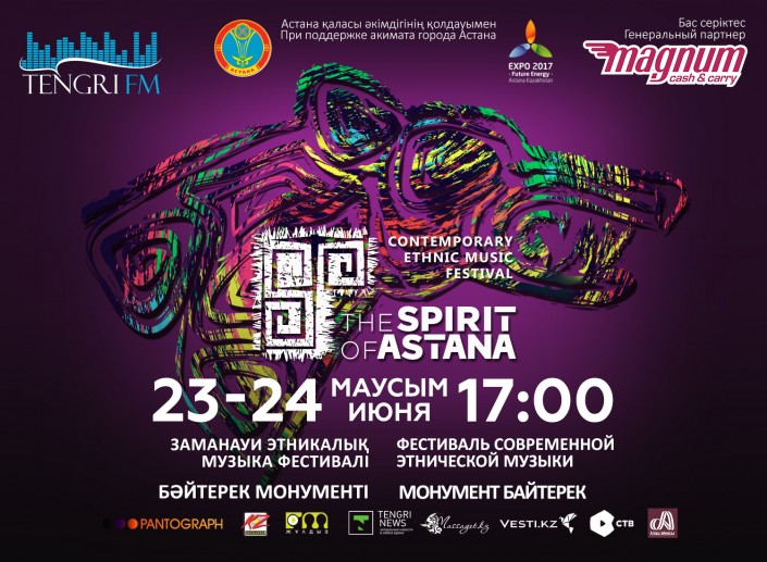 23 и 24 июня в Астане на площади у монумента "Байтерек" впервые пройдет музыкальный фестиваль The Spirit of Astana. Мультикультурный проект познакомит своих гостей с наследием народов Великой Степи и всего мира, объединяя самых ярких представителей современного этнического музыкального искусства на казахстанской земле. В течение двух концертных дней жителей и гостей столицы ждет масштабное световое музыкальное шоу. Свое искусство на сцене продемонстрируют 14 музыкальных коллективов Африки, США, Македонии, Грузии, Венгрии, России, Казахстана, Башкортостана, Бурятии, Тувы и других стран. Фестиваль пройдет при поддержке  акимата Астаны.