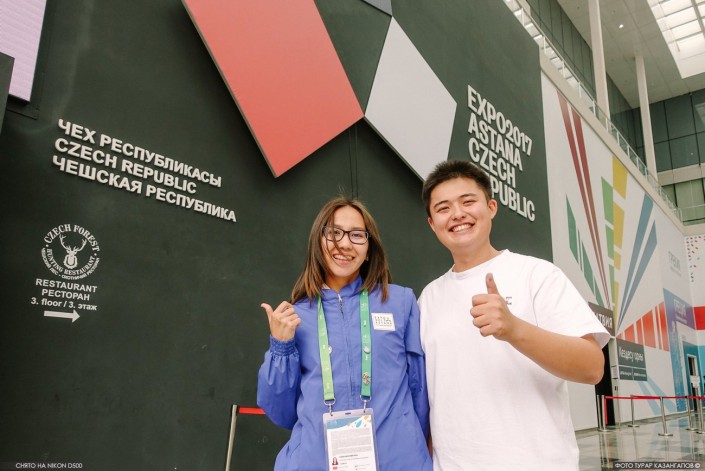 21-летние Диана Аргынбаева из Жамбылской области и Айдос Болатов из Астаны работают в павильоне Чехии. "Очень грустно уезжать. Научилась здороваться и прощаться на чешском языке. Понравилось общаться с людьми, знакомить с павильоном", - рассказывает Диана.