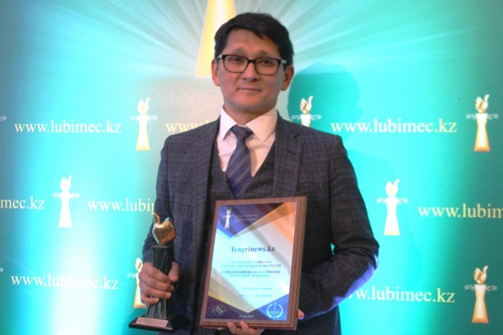 Для получения награды новостному порталу Tengrinews.kz в номинации "Лучший информационный портал" на сцену поднялся глава медиахолдинга Alash Media Group Батыр Казыбаев