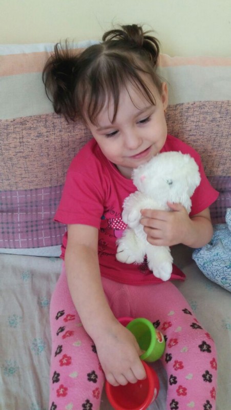 Накануне трехлетняя Настя вновь попала в реанимацию с кровотечением. Сегодня ее перевели в палату, и ребенок снова улыбается. Свою старшую сестру Надю она называет мамой. Сейчас они лежат в детской больнице Темиртау.