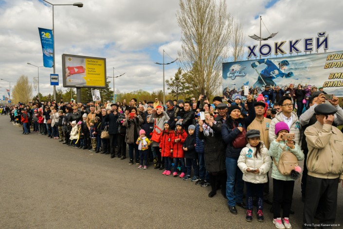Астанчане сегодня напевали все самые известные военные песни. Чаще всего звучали "День Победы" и "Катюша". Кто-то начинал, а кто-то подхватывал.