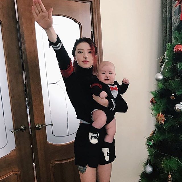 Судя по фотографии, которая была опубликована на странице skandal_krg в Instagram, снимок был сделан в канун Нового года. Девушка стоит возле елки, держа в руках малолетнего ребенка. Также героиня снимка показывает "нацистское приветствие", введенное во время Третьего рейха.