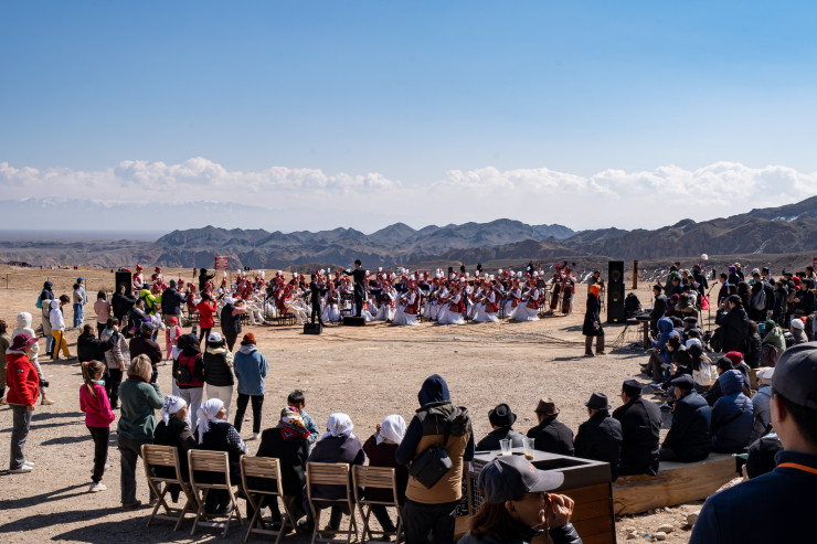 В дни празднования Наурыза в Чарынском каньоне распахнул свои двери новый визит-центр Sharyn. В прекрасный солнечный день 23 марта у всех посетителей визит-центра была возможность насладиться живой национальной музыкой на фоне знаменитого ущелья Долина Замков в исполнении Казахского национального оркестра народных инструментов имени Курмангазы.