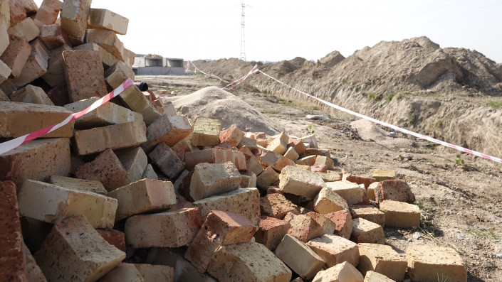 Похоже, что строители были здесь недавно. Кроме незаконченной работы, от них остались строительные материалы и много мусора.