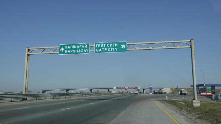 Город-спутник Алматы Gate Сity находится в Илийском районе Алматинской области. Водители вряд ли заблудятся в поисках этого места. Сразу два дорожных знака заманивают гостей на капшагайской магистрали при выезде из Алматы.  Над трассой и перед поворотом.