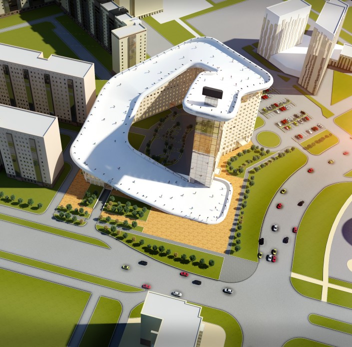 "Идея заключается в созданий на основе жилой застройки уникального комплекса с трассой для слалома. При реализации комплекса у него есть несколько достоинств. Это искусственно созданная в городе горнолыжная трасса. Она не имеет аналогов в мировой практике и поэтому может стать одной из достопримечательностей города", - отметили авторы проекта.