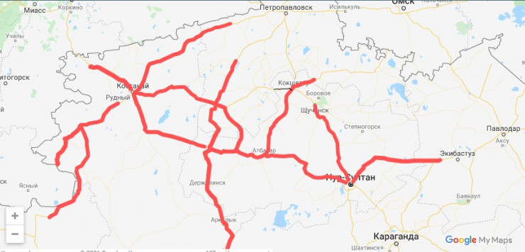 • Нур-Султан - Петропавловск - от 231-го до 341-го километра, участок Щучинск - граница с СКО;