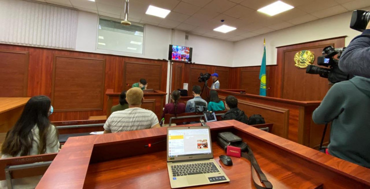 Журналисты во время судебного процесса в соседнем зале. Фото: Tengrinews.kz