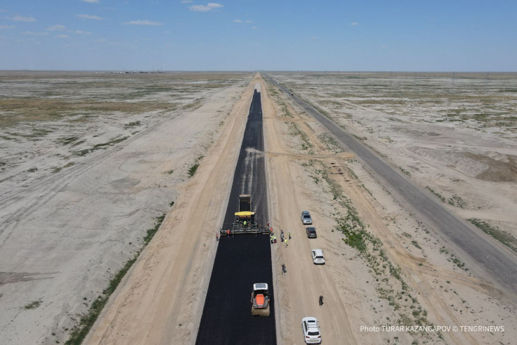"В настоящее время ведется реконструкция 217 километров дороги. Они разделены на 4 участка. Задействовано более 400 единиц техники и свыше 500 человек персонала. Ранее эта дорога была третьей технической категории. Сейчас она переводится во вторую категорию. Общая ширина будет 9 метров. До этого она была 7 метров. В текущем году выделено порядка 30 миллиардов тенге, эти средства, мы надеемся, что до конца текущего года будут освоены. Если те планы, которые мы на сегодняшний день поставили, реализуются, то мы к концу этого года от села Ганюшкино (Курмангазы. - Прим. автора) до Атырау можно будет ехать по асфальто-бетонному покрытию", - рассказал директор атырауского областного филиала "КазАвтоЖола" Булатбек Айтбаев.