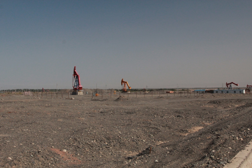 Гладкая асфальтированная дорога лежала через пустыню серо-бурых и глинистых почв, которые на вид казались отработанным, выжженным строительным материалом - это так называемые "поля черного гравия". "Очень скудная растительность, практически нет деревьев, лишь ветрогенераторы и нефтяные вышки. Пейзаж похож на удручающие кадры из какого-нибудь постапокалиптического фильма", - комментируют участники экспедиции.